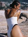 Retro White & Black Color Block One-Piece Swimsuit | Lily's Summer