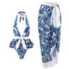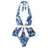 2025 New One-Piece Swimming Strap Clothes For Women Tight Retro Print Bikini Swimsuit Chiffon Long Skirt Set Floral Plus Size Halter Monokini 2025 | Trendy Ruffle One-Piece Swimsuit